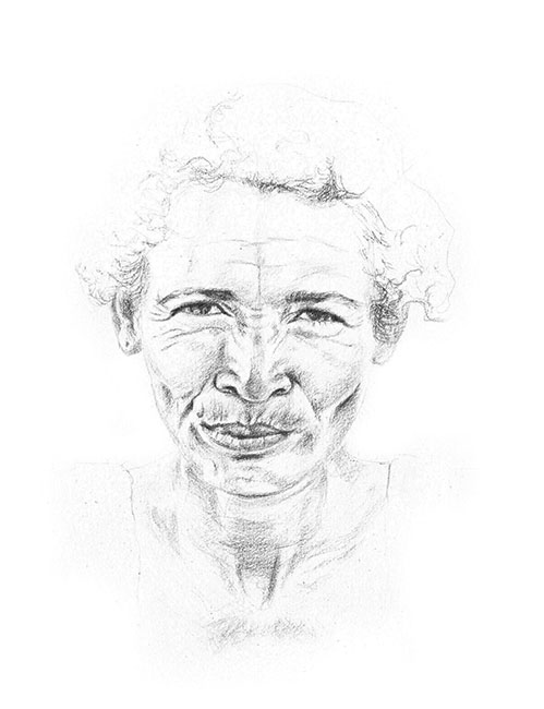 Stéphanie Hoareau a fait de la peinture un médium de prédilection. Dès le départ, elle peint la part cachée de l’île de la Réunion en explorant ses paysages et ses habitants. En 2010, elle réalise une impressionnante vue de la forêt de Bélouve dont elle a accentué l’atmosphère mystérieuse et silencieuse. Formée de six panneaux mesurant chacun 1m50 de large, l’œuvre nous fait entrer, physiquement et mentalement, dans une forêt difficile d’accès située dans les hauts de l’île. L’artiste arpente aussi bien les paysages naturels que les paysages urbains : propices à l’observation d’un autre faune. En 2012, elle entreprend un projet d’ampleur consacré aux figures marginales de l’Île. Des hommes et des femmes dont tout le monde connaît les visages et les prénoms. Des individus qui vivent à l’écart de la société, suscitant aussi bien la méfiance que la fascination. Ils sont à l’origine de légendes puisqu’à leurs propos court une multiplicité de rumeurs, d’histoires et d’anecdotes. L’artiste est allée à leur rencontre, à Saint-Denis, au Port et ailleurs, instaurant avec eux une relation de confiance, par la discussion, l’écoute, la présence et l’entraide. Au fil des jours et des semaines, Charlotte, Jean-François, Jacqueline, Maximin et Elyse sont devenus les modèles que l’artiste a photographiés et dessinés. Elle s’est concentrée sur leurs visages, leurs aspérités, mais surtout sur leurs regards qui oscillent entre errance et profondeur. Stéphanie Hoareau prend le temps de rendre visibles celles et ceux que nous croisons ou que nous évitons soigneusement. Des photographies à la peinture, en passant par la sculpture et la vidéo, l’intensité des regards nous interpelle. La confrontation des regards, les leurs, les nôtres, produit autant de fascination que de malaise. À la marginalité de ses personnages, Stéphanie Hoareau préfère la liberté et la fragilité de leurs existences en rupture avec le réel organisé de la société.
