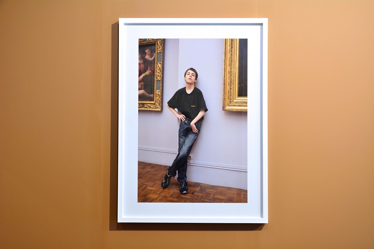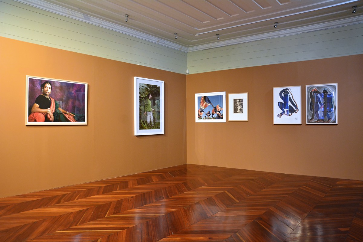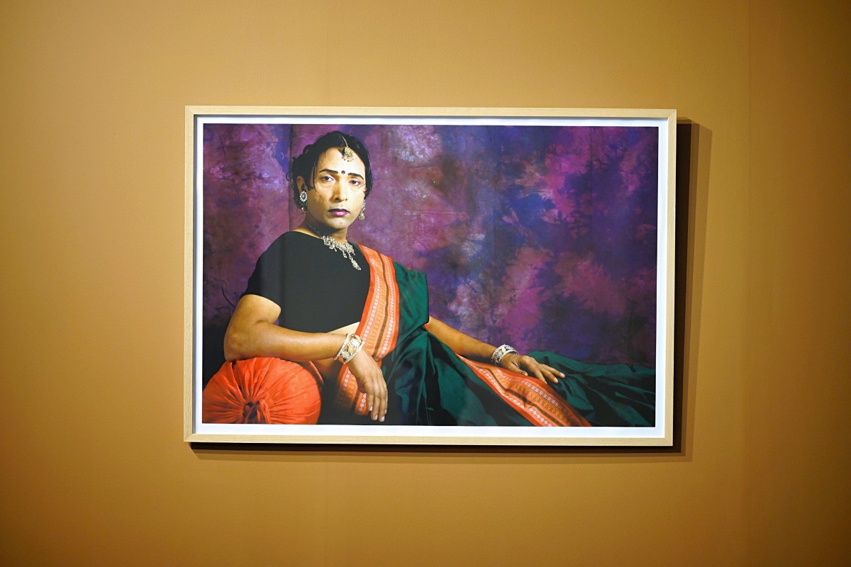 Sunil Gupta, artiste d’origine indienne vivant à Londres, crée la série The New Pre-Raphaelites en 2008 avec la volonté de soutenir le combat pour faire annuler une loi datant de l’ère coloniale, l’article 377 du code pénal indien, criminalisant l’homosexualité. L’œuvre nous montre une personne dont la présence et l’allure sont indéniables. Le regard et la posture affichent une puissance intense de défi. Le rouge écarlate et le vert franc et lumineux de son sari, le fond violet marbré, les bijoux en or, tout ici est une déclaration d’assurance et de prise de liberté, de défi.
