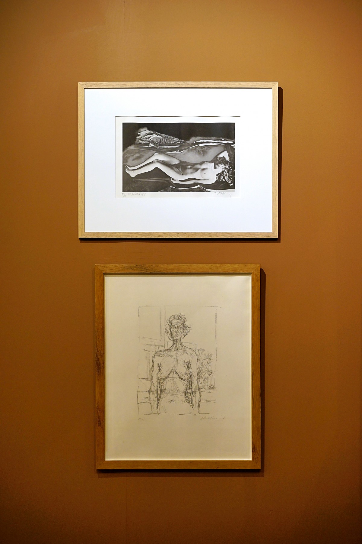 Alberto Giacometti, qu’on ne présente plus, a développé une œuvre formidable reconnu mondialement. Ce Nu aux fleurs esquisse le buste d’une femme nue. On devine en arrière-plan un décor suggéré de fleurs et de fenêtres. Elle se présente à nous, élancée, fine, souveraine dans un corps longiligne, étiré. Elle semble sans âge. Elle affiche une belle détermination.