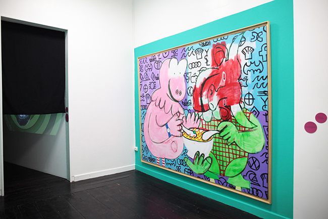 Jeux d’artifices aborde la question de la perception de l’œuvre d’art ; ou comment accompagner le jeune public dans sa découverte des œuvres sans pour autant influencer son point de vue. Une partie de la réponse à cette question pourrait se trouver dans Le Petit Prince de Saint-Exupéry, de 1943. Les œuvres d’art seraient comme les roses que rencontre le Petit Prince, leurs singularités nous échappent et ne représentent rien tant que nous ne les regardons pas vraiment, tant que nous ne les avons pas apprivoisées. C’est du moins l’enseignement que nous donne le Renard quand il affirme que « l’essentiel est invisible pour les yeux ». L’idée n’est pas de seulement regarder de l’extérieur – mais bien de percevoir l’œuvre et de s’en emparer. La scénographie de l’exposition est une invitation à « entrer dans les œuvres » par le biais de dispositifs ludiques. On les recadre, on entre dans les détails, on traverse les aplats, on transforme les couleurs, on interagie avec les formes, on joue, on observe, on met des mots sur ce que l’on voit. L’enjeu est de mettre le spectateur dans une posture active : colorier la photographie de Samuel Fosso, entrevoir des détails dans la peinture de Cristof Dènmont ou encore jouer au jeu des sept erreurs avec la pièce de Gabrielle Manglou. L’œuvre originale reste disponible et le public fait l’aller-retour entre elle et sa copie non conforme. Il s’agit de montrer aux enfants les nombreux outils et médiums utilisés par les artistes. La pièce du collectif Qubo Gas permet d’appréhender autrement internet ou l’ordinateur.