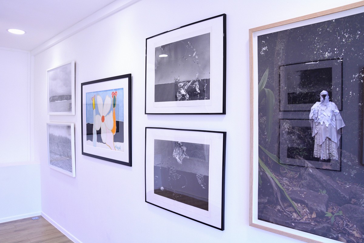 Les êtres humanoïdes de Kid Kreol & Boogie nous accueillent. Ils gardent l’entrée et se font les passeurs de l’espace. Silencieusement, ils nous demandent d’abandonner notre égo humain pour renouer avec l’âme infinie du vivant. S’ensuit une galerie où sont nichées les œuvres d’artistes-chamanes. Zénith et Nadir, les photographies de Youssouf Wachill nous amènent à nous pencher vers la magie de petits phénomènes activés à la surface de l’eau. Des cieux les plus lointains aux entrailles de la terre, les images nous signifient les espaces impensés au-dessus et en dessous de nous. Les œuvres de Rina Ralay Ranaivo et de Malcolm de Chazal se font écho. Elles mettent en scène la souveraineté : celle d’une fleur sur deux palmiers pour l’un – celle d’une île comme posée à la surface de l’océan pour l’autre. Philippe Gaubert donne ensuite la parole à quatre bords de l’île de La Réunion dans sa série Rivages. Les chants de ce quatuor encadrent l’œuvre vidéo d’Edith Dekyndt dans laquelle l’artiste nous fait ressentir les vibrations des vents.