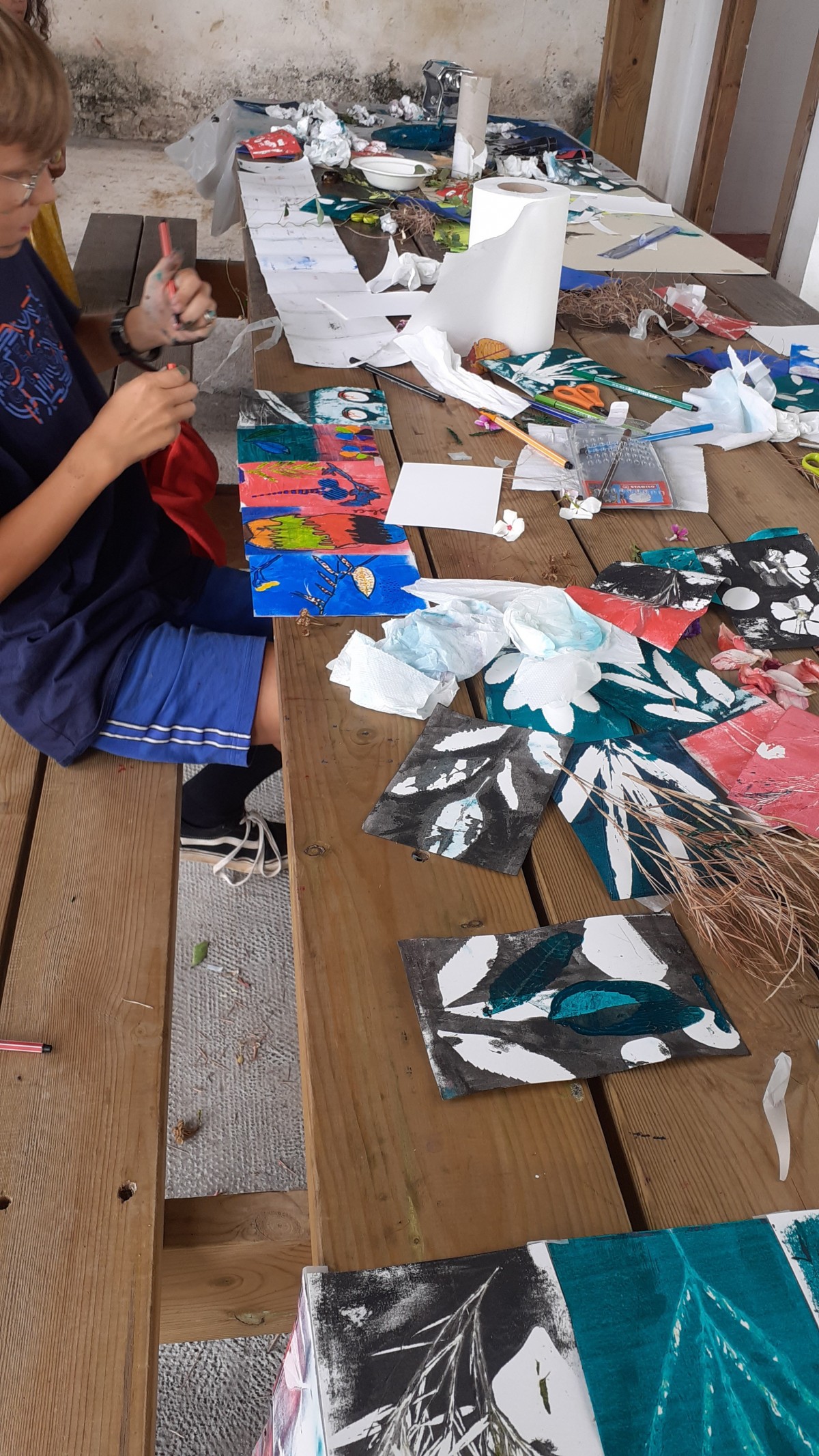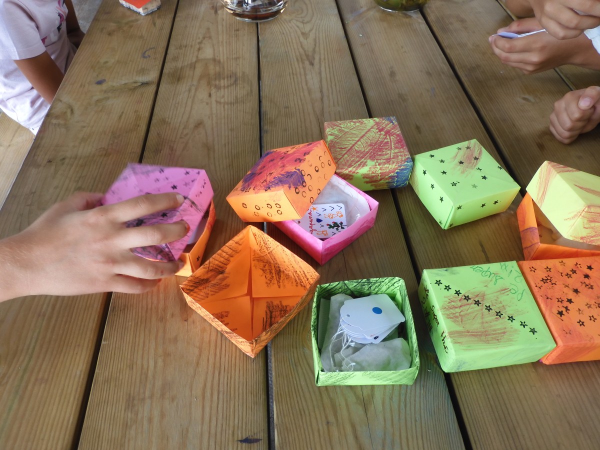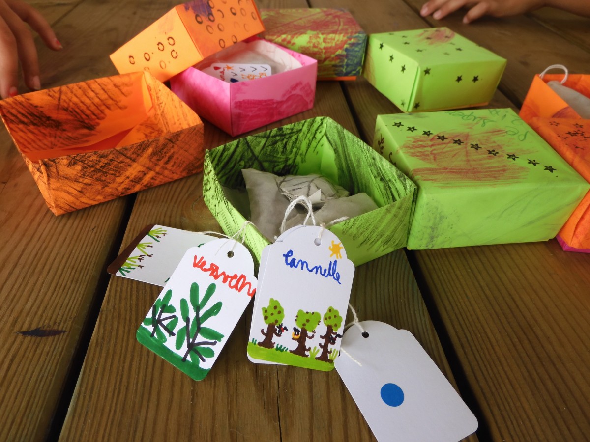 Nous pourrons aussi faire un atelier boîte magique autour du jardin pourpre. Pour cela les enfants collecterons des éléments et devrons imaginer une histoire à partir des ces éléments. Ces histoires pourront être partagées avec le groupe. Nous pourrons aussi utiliser les éléments de cette collecte pour réaliser des cartes postales avec un système d’empreinte grâce à une mini presse. Nous pourrons explorer à l’occasion de cet atelier la teinte pourpre.