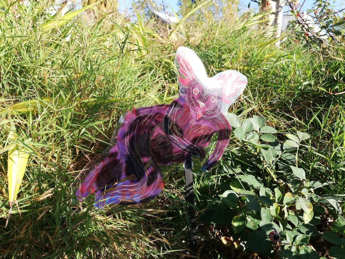 Nous installerons nos personnages dans le Jardin Pourpre, piqués dans la terre ou suspendus aux plantes pour quelques jours. L’installation sera photographiée pour garder une trace.