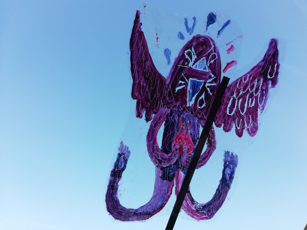 Il sera proposé de peindre les personnages pourpres sur du rhodoïde en jouant sur les transparences et les opacités, de revenir graver dans la peinture sèche pour ajouter des motifs puis de les découper.